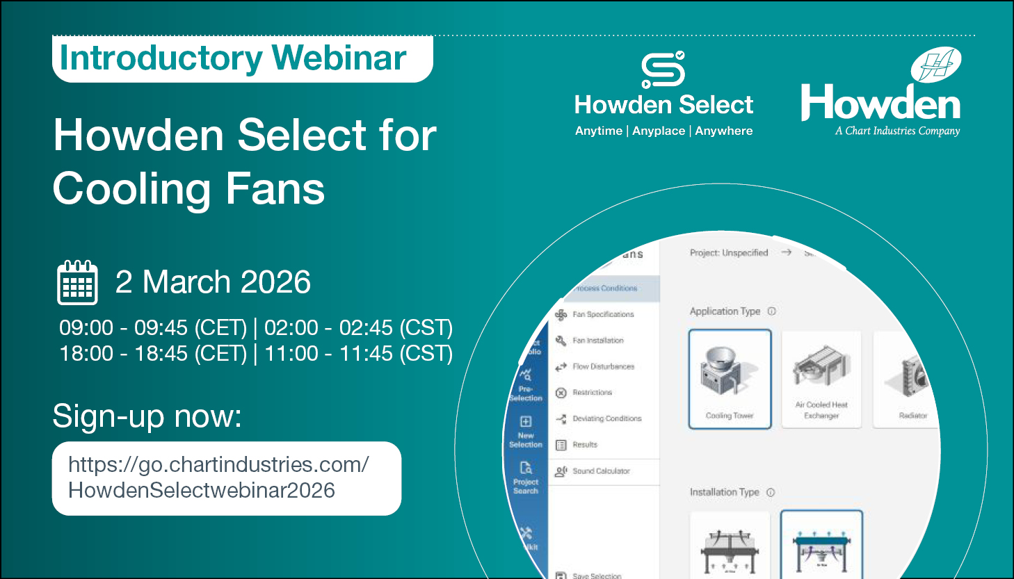 Our Howden engineers are the finest in the world at selecting the right solution for our customers. We know that customers want to do their own selections as well though. Therefore we have concentrated our 160 years of engineering expertize into a software tool that enables you to easily create your own selections.